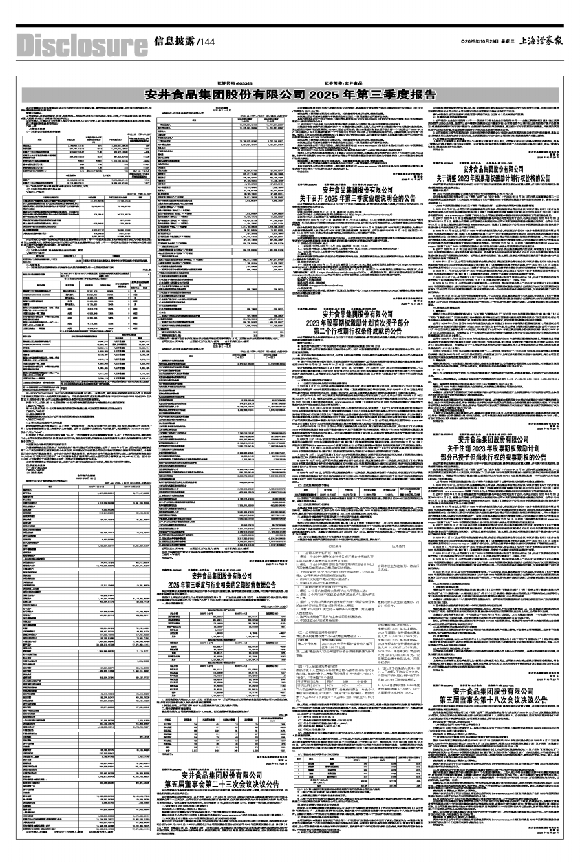 具体内容详见公司于同日刊登在上海证券交易所网站(www.sse.com.cn)的《安井食品2025年第三季度报告》。