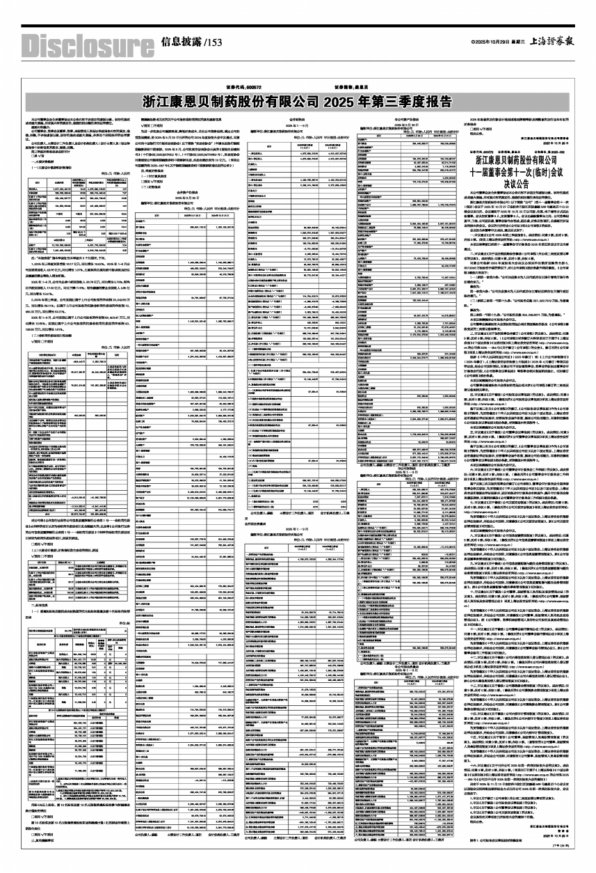 浙江康恩贝制药股份有限公司(以下简称“公司”)第十一届董事会第十一次(临时)会议于2025年10月27日在杭州市滨江区滨康路568号康恩贝中心22楼会议室召开。会议通知于2025年10月22日以书面、传真、电子邮件方式送达各董事。会议应到董事9人,实到董事9人。会议由姜毅董事长主持。公司监事胡夏平、王栋,公司副总裁、董事会秘书金祖成,副总裁、财务总监谌明,总裁顾问罗国良列席本次会议。会议的召开符合《公司法》和《公司章程》的规定。