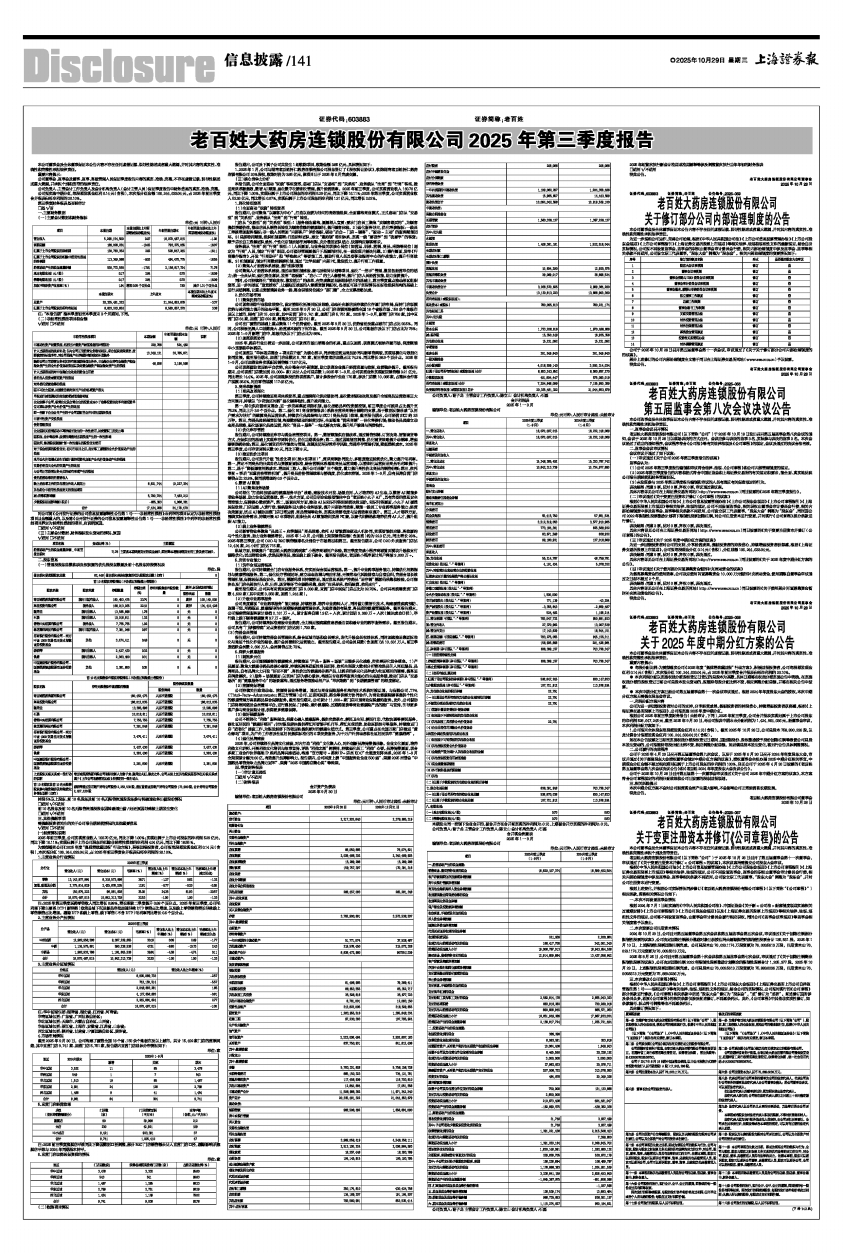 老百姓大药房连锁股份有限公司2025年第三季度报告