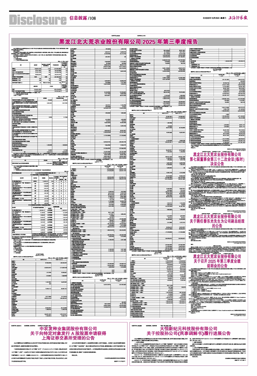 黑龙江北大荒农业股份有限公司2025年第三季度报告