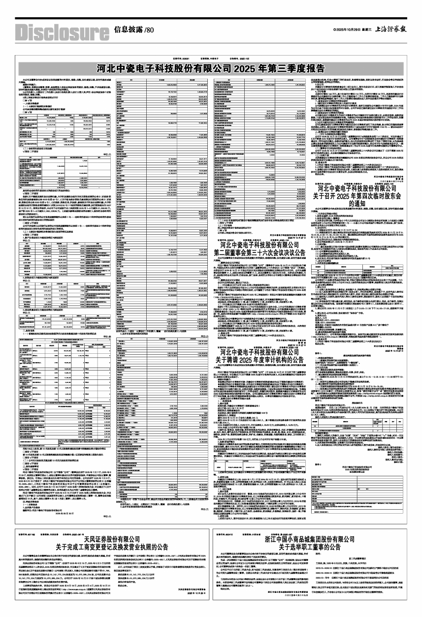 《河北中瓷电子科技股份有限公司2025年三季度报告》详见公司指定信息披露媒体巨潮资讯网(http://www.cninfo.com.cn)。