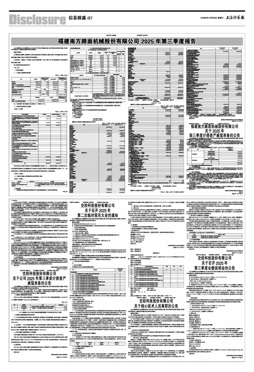 交控科技股份有限公司(以下简称“公司”)已于2025年10月29日披露公司2025年第三季度报告,为便于广大投资者更全面深入地了解公司2025年第三季度经营成果、财务状况,公司计划于2025年11月5日(星期三)11:00-12:00举行2025年第三季度业绩说明会,就投资者关心的问题进行交流。