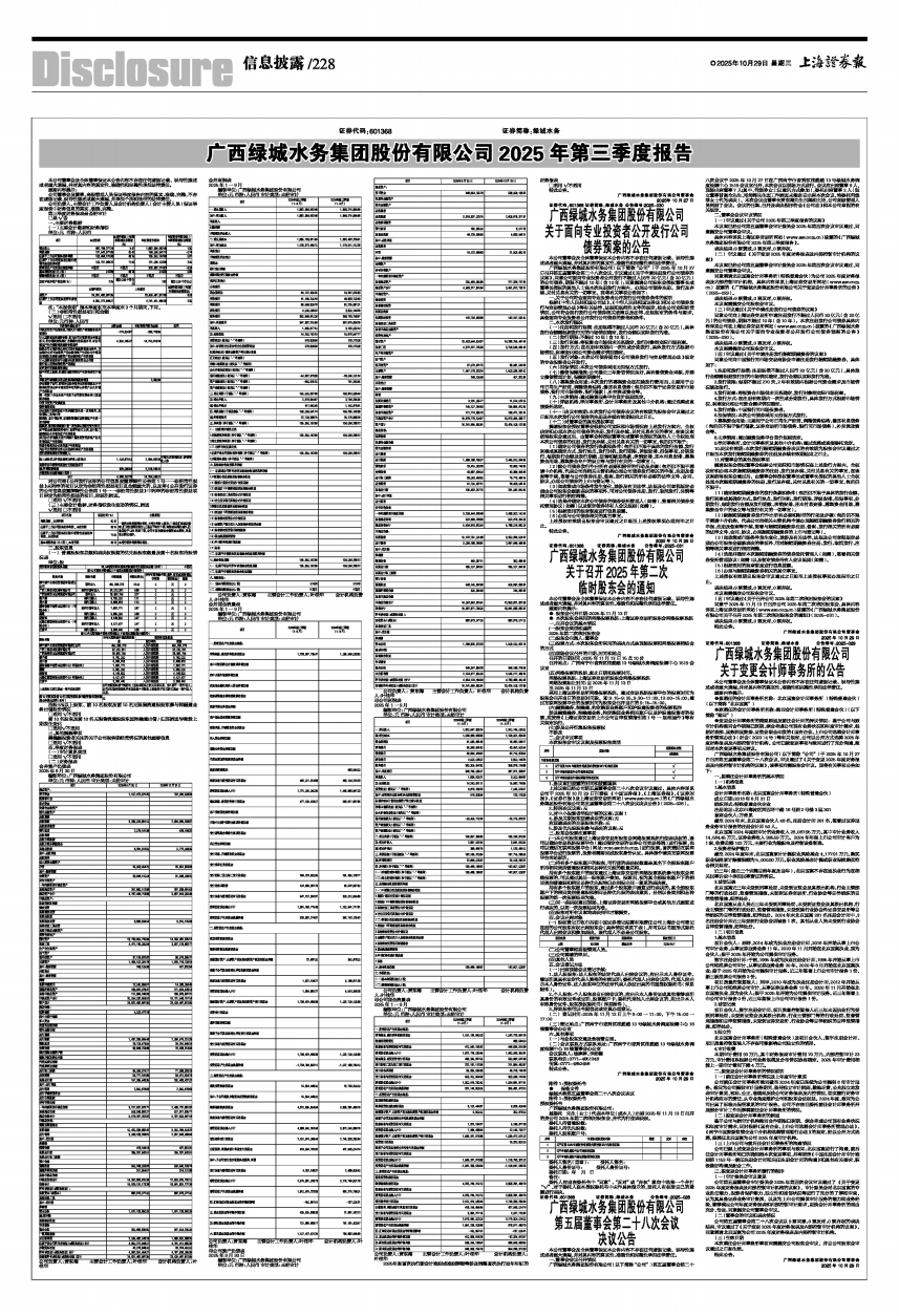 具体内容详见上海证券交易所网站(www.sse.com.cn)披露的《广西绿城水务集团股份有限公司2025年第三季度报告》。