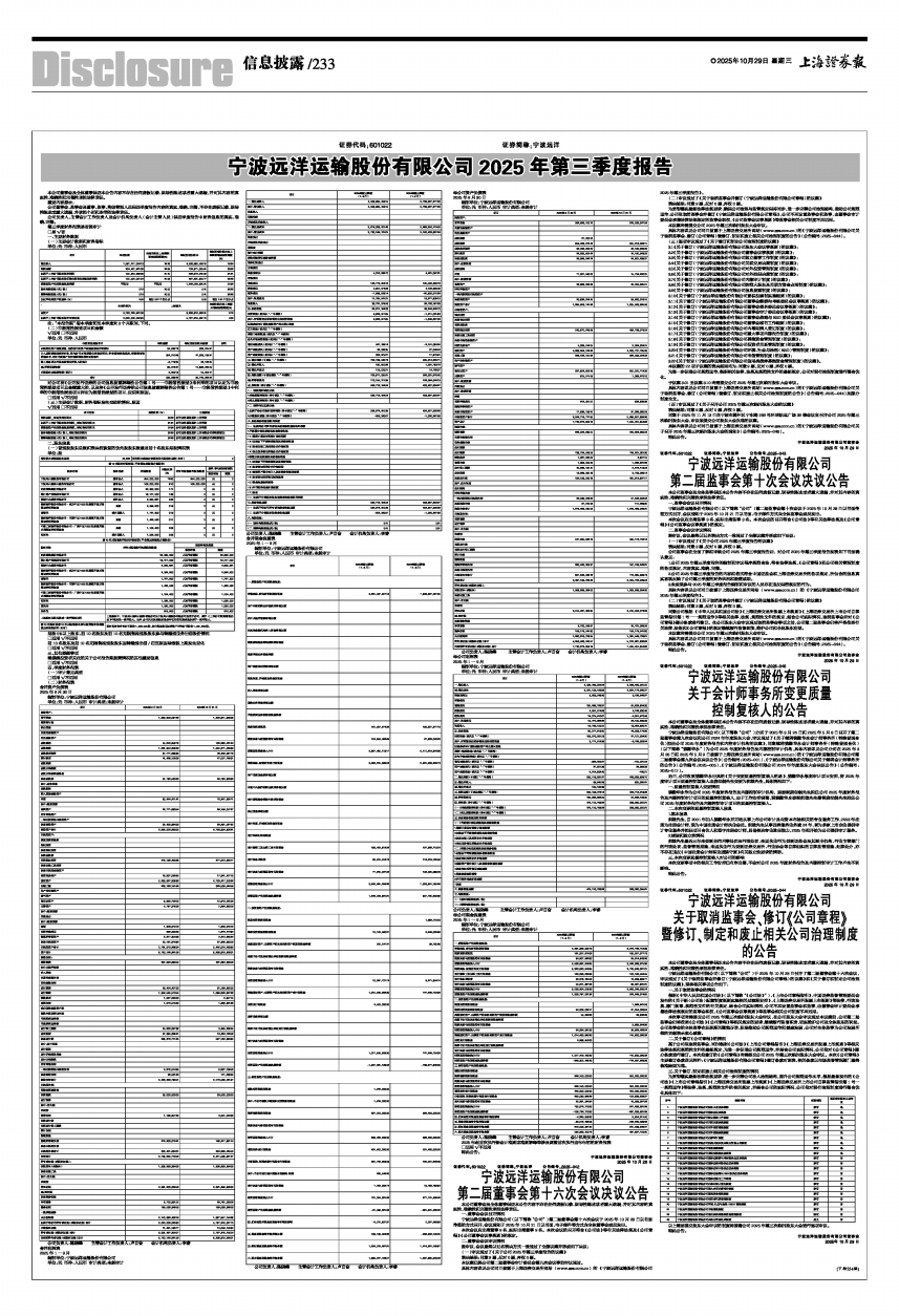 宁波远洋运输股份有限公司2025年第三季度报告