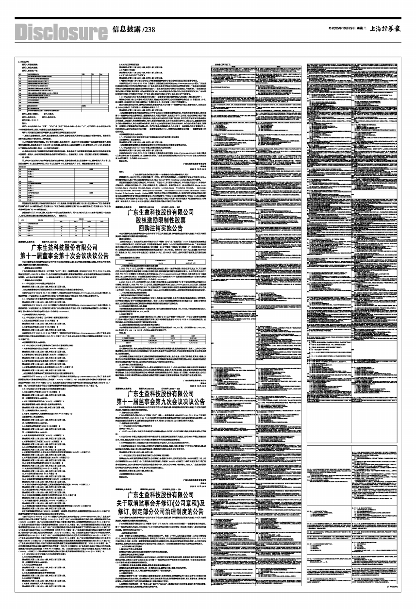 广东生益科技股份有限公司(以下简称“公司”)于2025年10月28日召开第十一届董事会第十次会议,第十一届监事会第九次会议,审议通过了《关于取消监事会并修订〈公司章程〉的议案》和修订、制定相关制度的议案。现将有关情况公告如下: