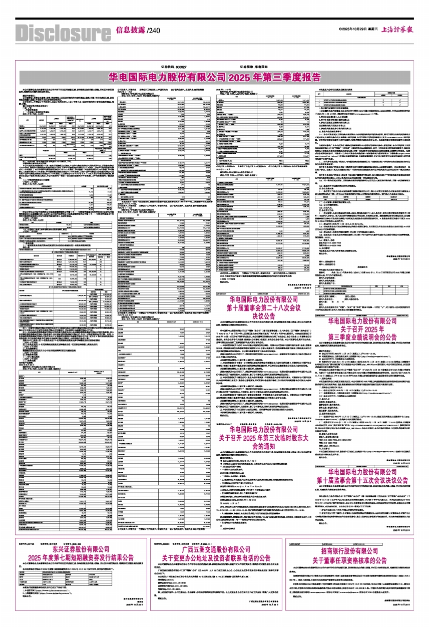 具体内容详见本公司同日于上海证券交易所网站(www.sse.com.cn)披露的《华电国际电力股份有限公司2025年第三季度报告》。