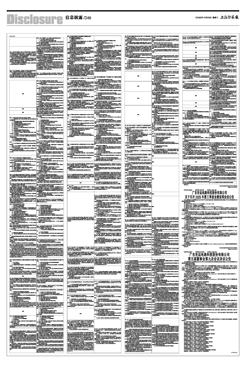 广东世运电路科技股份有限公司(以下简称“公司”)已于2025年10月29日发布公司2025年第三季度报告,为便于广大投资者更全面深入地了解公司2025年第三季度经营成果及财务状况,公司计划于2025年11月5日(星期三)上午9:00-10:00举行2025年第三季度业绩说明会,就投资者关心的问题进行交流。