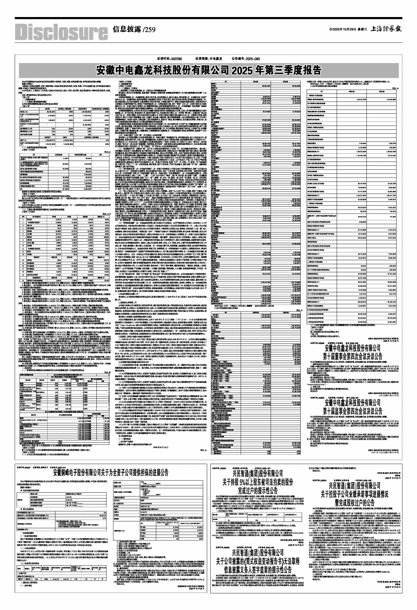 安徽中电鑫龙科技股份有限公司2025年第三季度报告