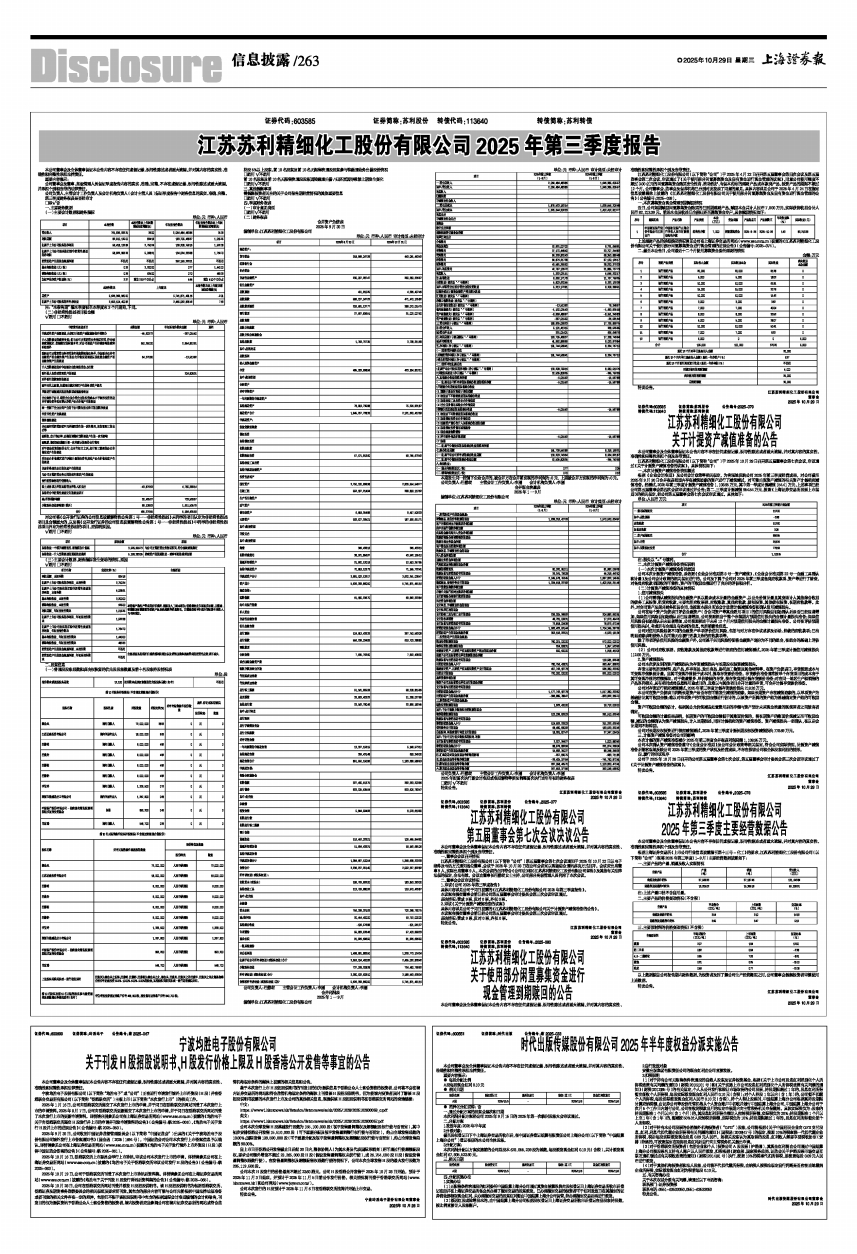 江苏苏利精细化工股份有限公司2025年第三季度报告