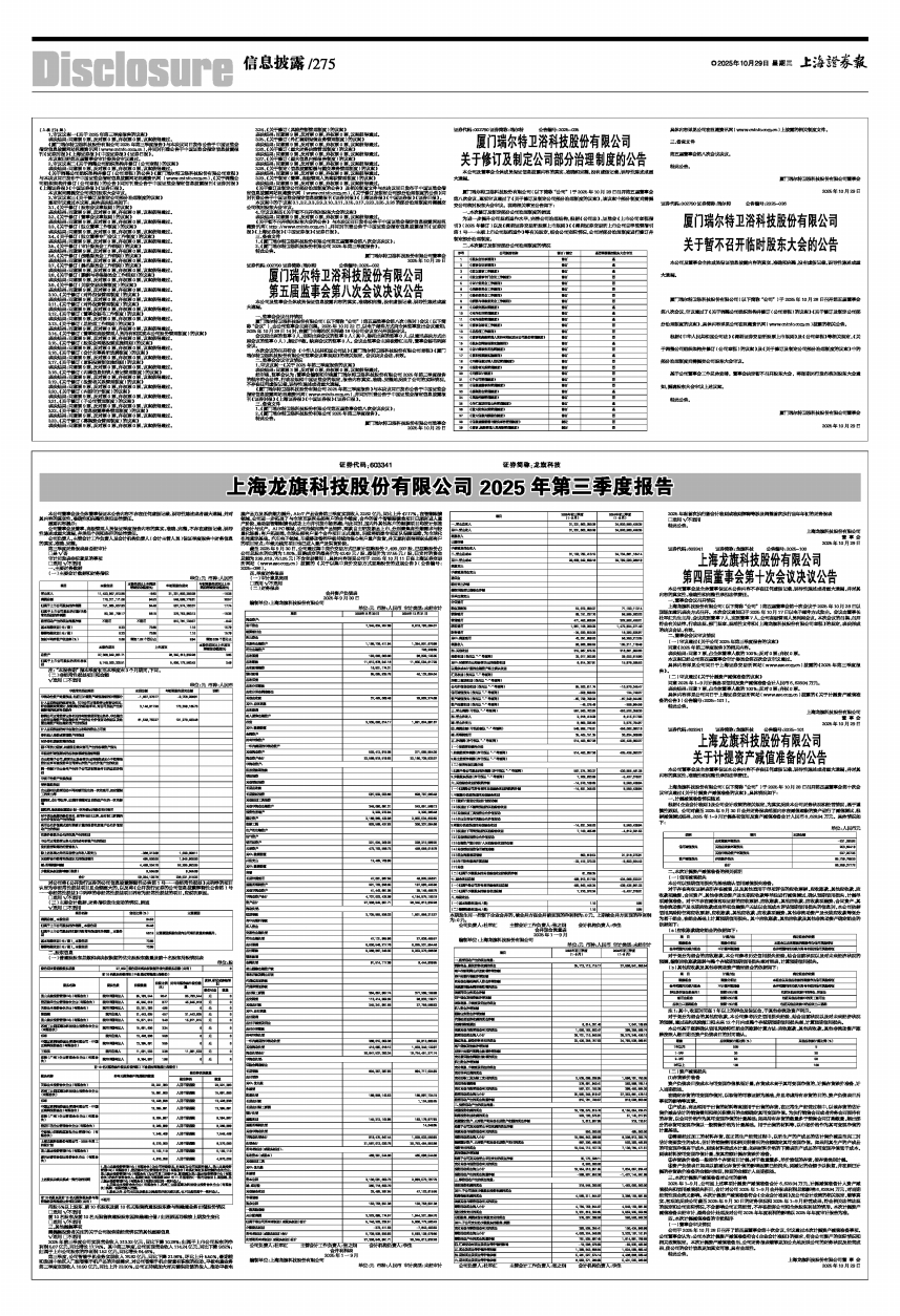 上海龙旗科技股份有限公司 2025年第三季度报告