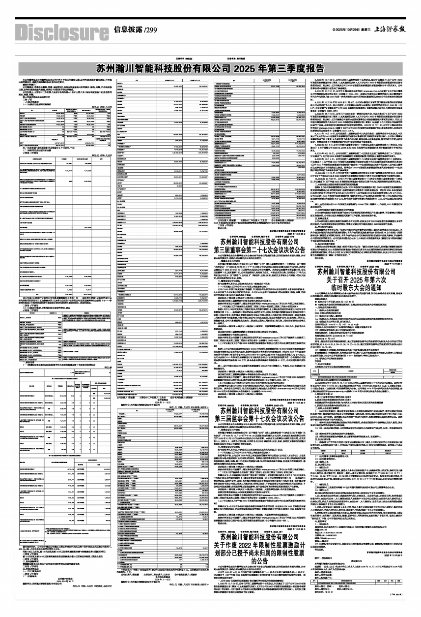 苏州瀚川智能科技股份有限公司 2025年第三季度报告