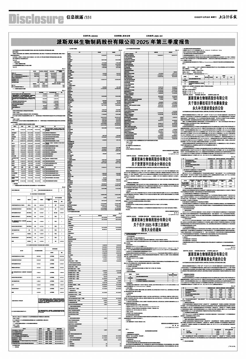 派斯双林生物制药股份有限公司2025年第三季度报告