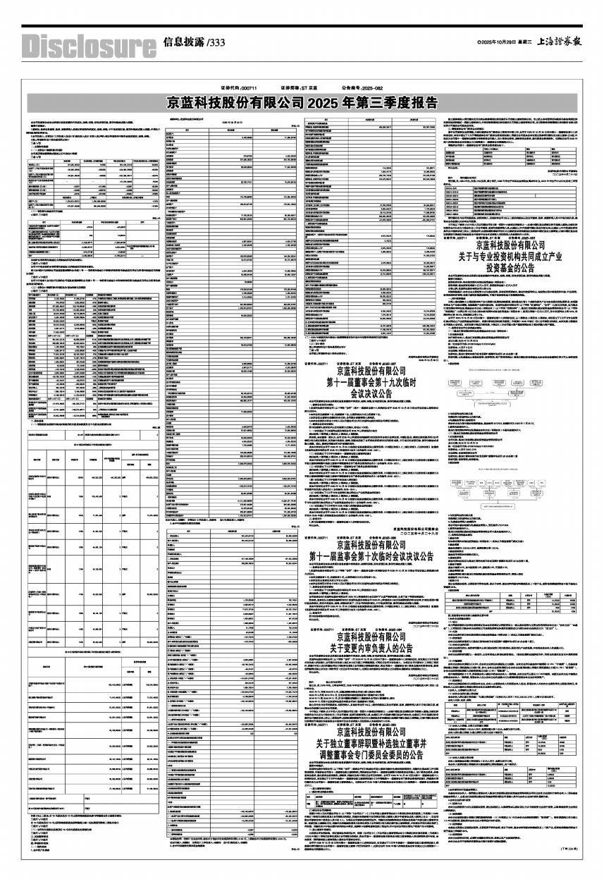 具体内容详见公司于2025年10月29日在指定信息披露媒体巨潮资讯网、《中国证券报》、《上海证券报》、《证券时报》披露的《京蓝科技股份有限公司2025年三季度报告》全文(公告编号:2025-082)。
