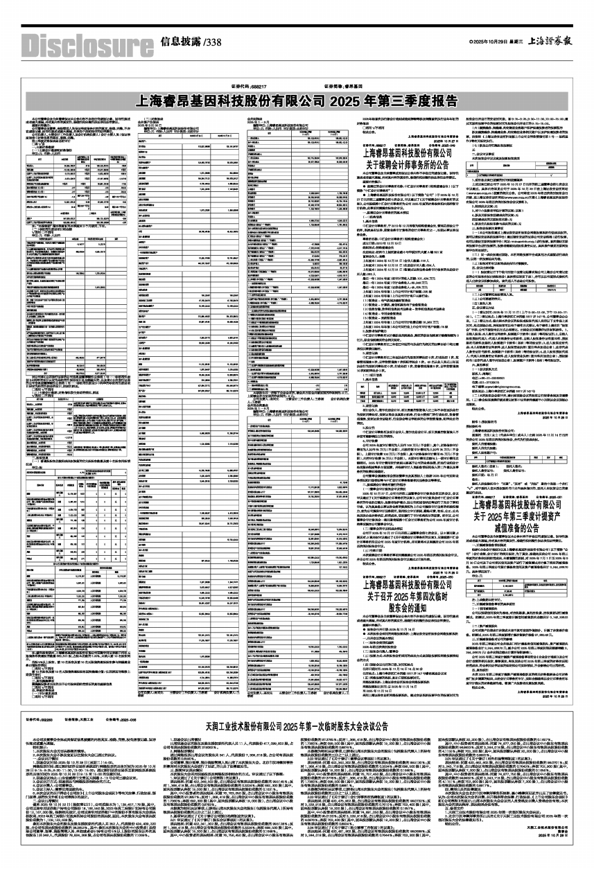 上海睿昂基因科技股份有限公司 2025年第三季度报告