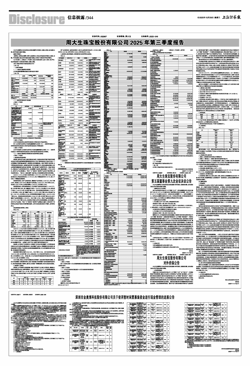 周大生珠宝股份有限公司2025年第三季度报告