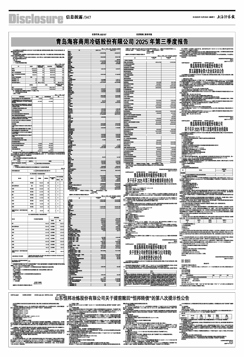 具体内容详见公司在上海证券交易所官方网站(www.sse.com.cn)披露的《青岛海容商用冷链股份有限公司2025年第三季度报告》。