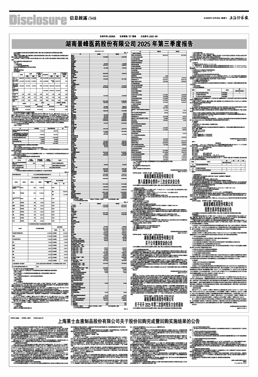 1、湖南景峰医药股份有限公司(以下简称“公司”)于2025年10月21日收到湖南省常德市中级人民法院(以下简称“常德中院”)送达的(2024)湘07破申7号《民事裁定书》和(2025)湘07破15号《决定书》,裁定受理彭东钜、上海鑫绰投资管理有限公司对公司的重整申请,并指定北京市中伦律师事务所担任公司管理人。