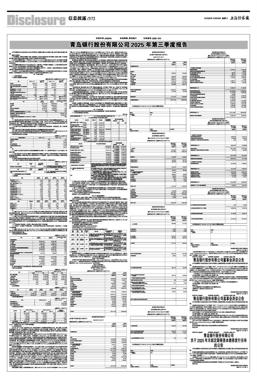 2.本行第九届董事会第二十次会议于2025年10月28日以通讯表决方式召开,会议应参与表决董事14名,实际参与表决董事14名,会议审议通过了《关于青岛银行股份有限公司2025年第三季度报告的议案》。