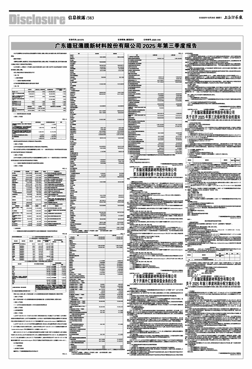广东德冠薄膜新材料股份有限公司2025年第三季度报告