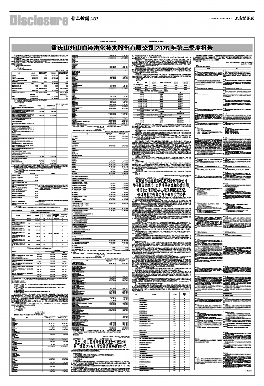 重庆山外山血液净化技术股份有限公司 2025年第三季度报告