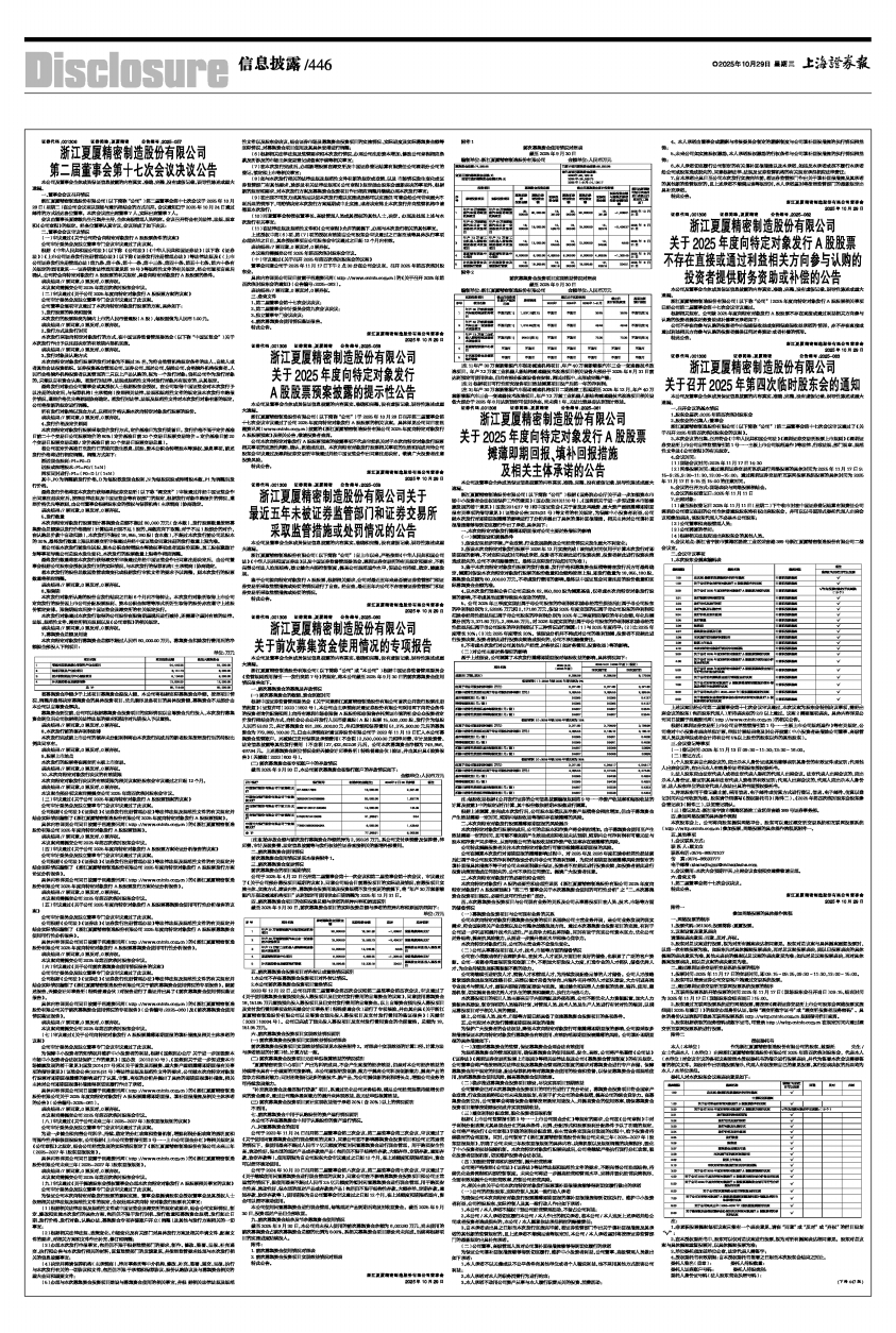 具体内容详见公司同日披露于巨潮资讯网(http://www.cninfo.com.cn)的《浙江夏厦精密制造股份有限公司2025年度向特定对象发行A股股票预案》。