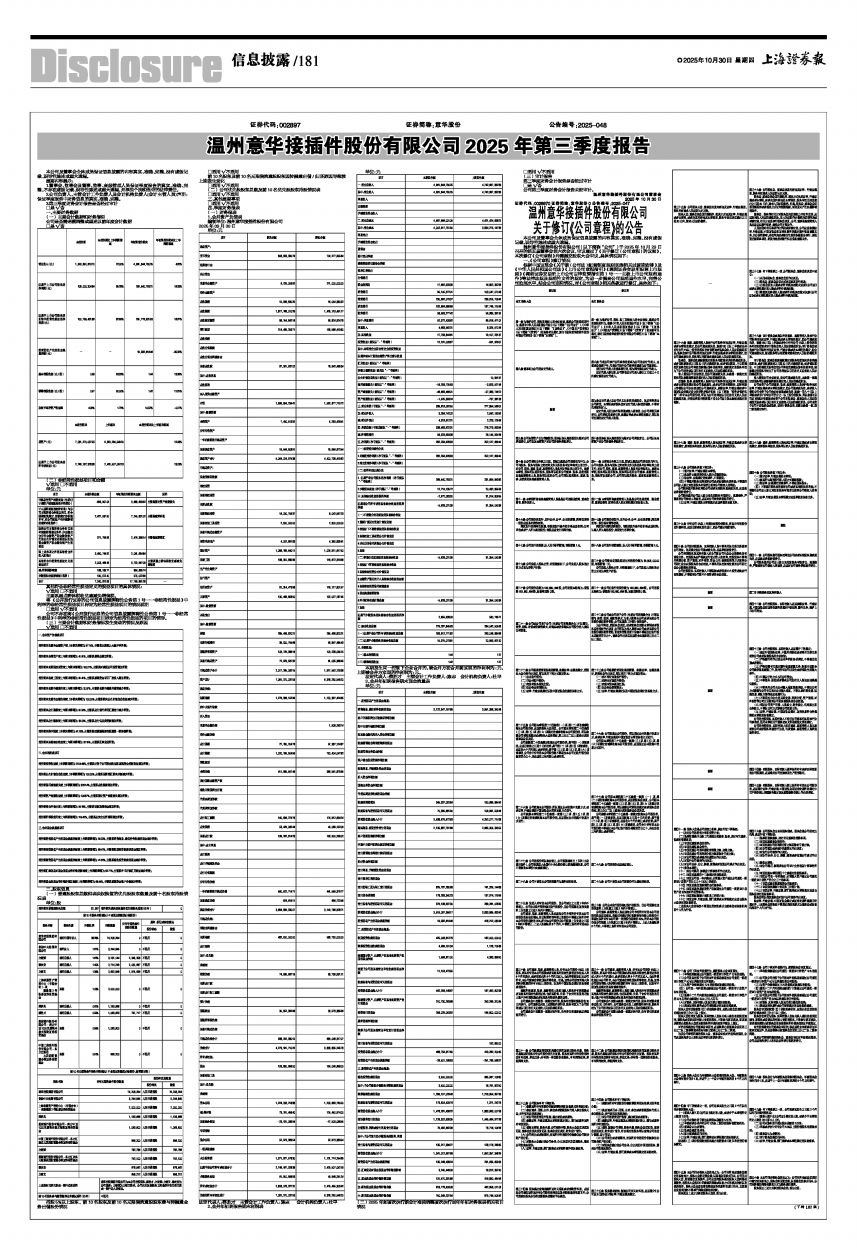 温州意华接插件股份有限公司2025年第三季度报告