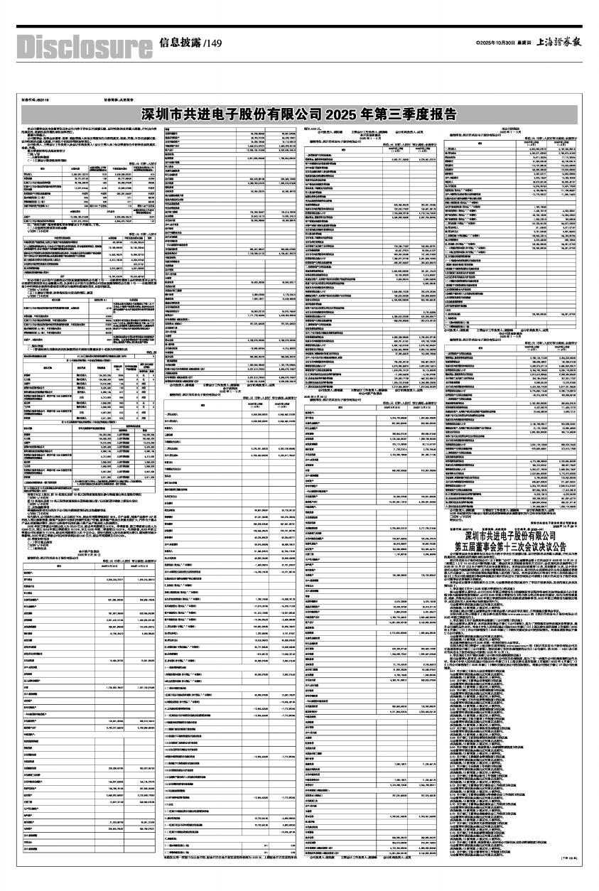 详细内容见同日登载于上海证券交易所网站www.sse.com.cn的《深圳市共进电子股份有限公司2025年第三季度报告》。