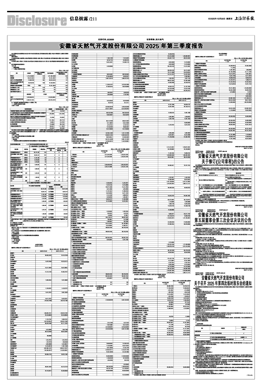 安徽省天然气开发股份有限公司2025年第三季度报告