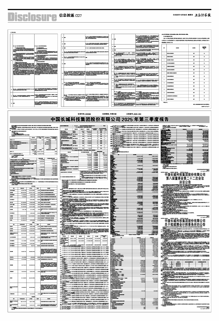 中国长城科技集团股份有限公司(以下简称“公司”)第八届董事会第二十二次会议通知于2025年10月20日以电子邮件方式发出,会议于2025年10月28日在深圳中电长城大厦会议室以现场加视频方式召开,应参加会议董事九名,亲自出席会议董事九名;符合《公司法》和《公司章程》的有关规定。会议由董事长戴湘桃先生主持,审议通过了以下议案: