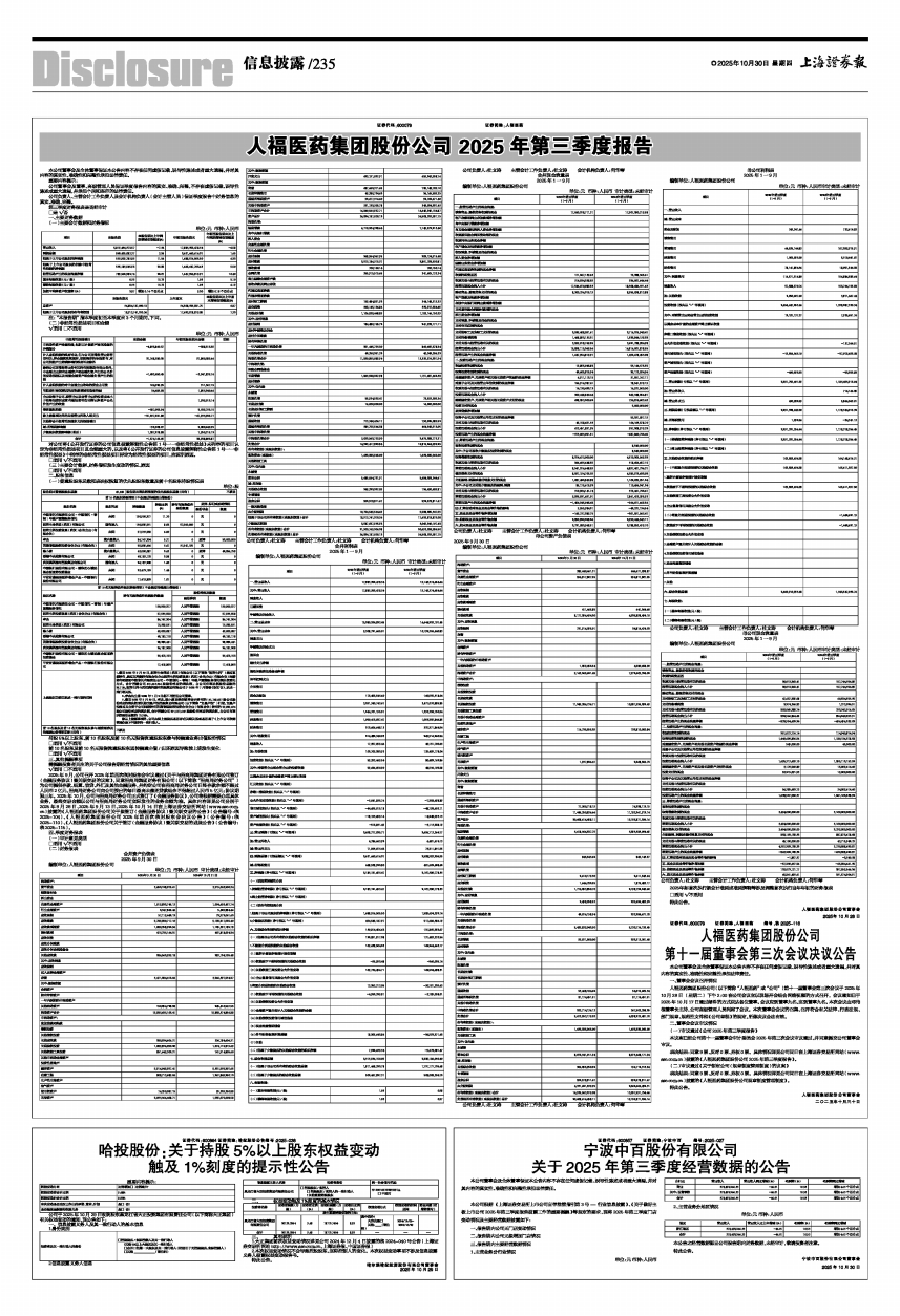 表决结果:同意9票、反对0票、弃权0票。具体情况详见公司同日在上海证券交易所网站(www.sse.com.cn)披露的《人福医药集团股份公司2025年第三季度报告》。