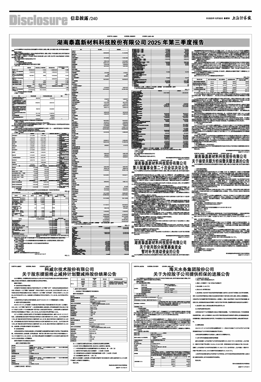 湖南泰嘉新材料科技股份有限公司2025年第三季度报告