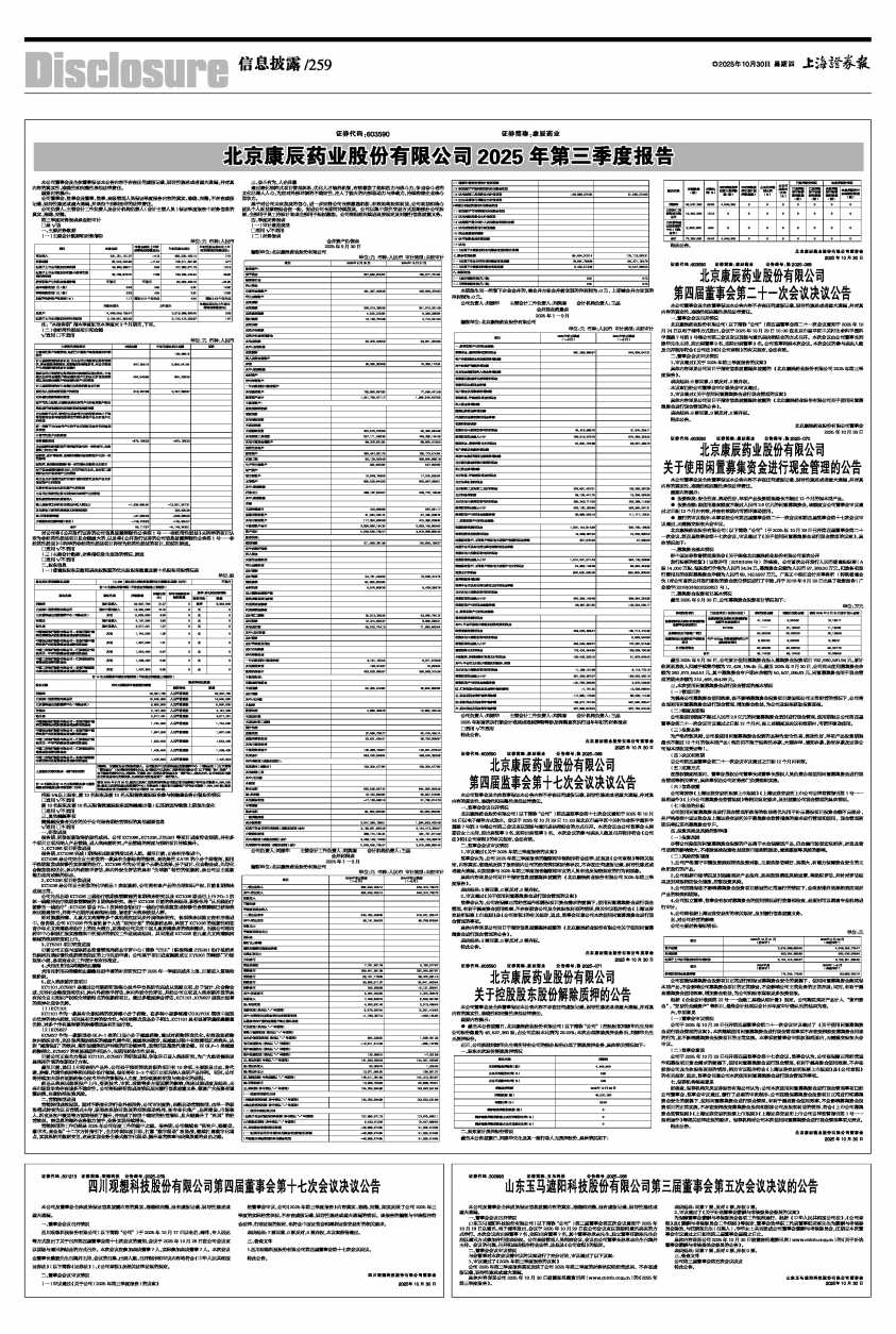 具体内容详见公司同日于指定信息披露媒体披露的《北京康辰药业股份有限公司2025年第三季度报告》。