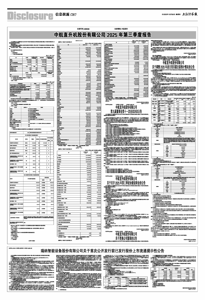 1、会议以8票同意,0票反对,0票弃权,通过了《中航直升机股份有限公司2025年第三季度报告》,同意公司2025年第三季度报告的内容。公司 2025年第三季度报告的编制和审议程序符合法律、法规及《公司章程》等相关规定,公允地反映了公司2025年第三季度的财务状况和经营成果等事项。所披露的报告内容真实、准确、完整,不存在虚假记载、误导性陈述或重大遗漏。具体内容详见同日披露的《中航直升机股份有限公司2025年第三季度报告》。在提交本次董事会审议前,本议案已经公司第九届董事会审计委员会第八次会议审议通过。