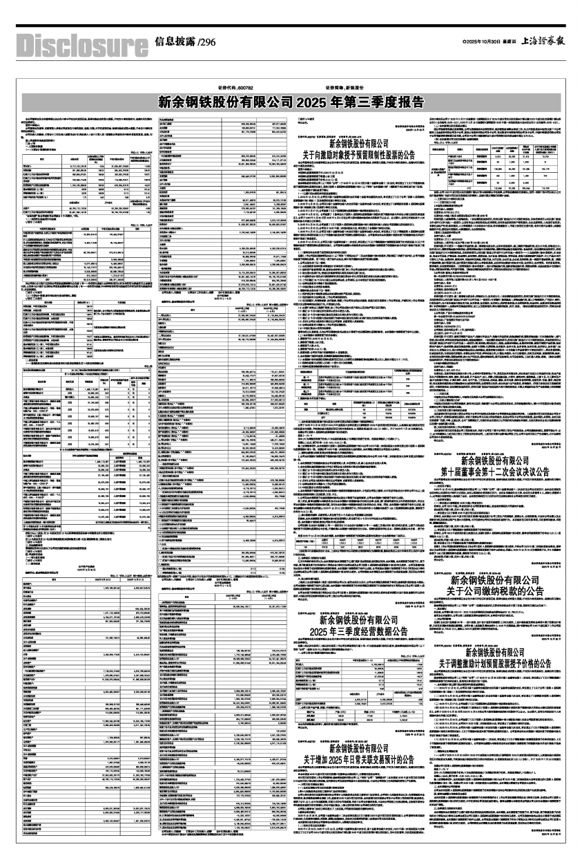 新余钢铁股份有限公司2025年第三季度报告