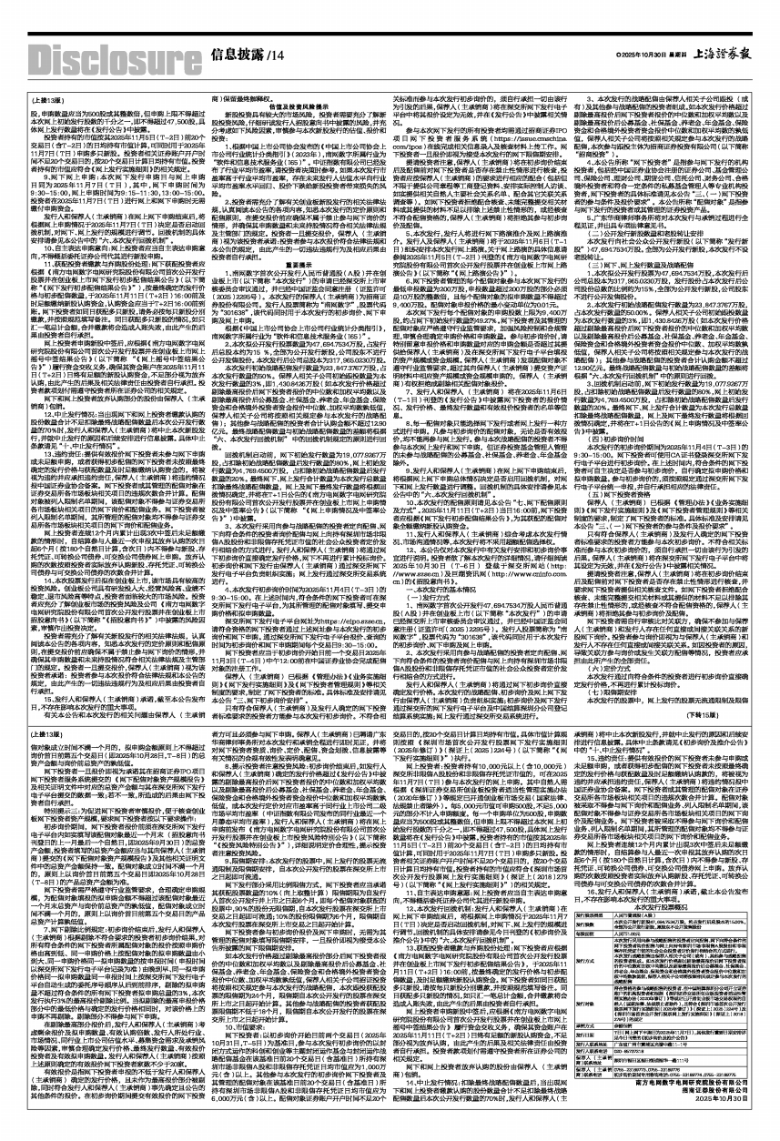 12、本次发行回拨机制:发行人和保荐人(主承销商)在网上网下申购结束后,将根据网上申购情况于2025年11月7日(T日)决定是否启动回拨机制,对网下、网上发行的规模进行调节。回拨机制的具体安排请参见今日刊登的《初步询价及推介公告》中的“六、本次发行回拨机制”。