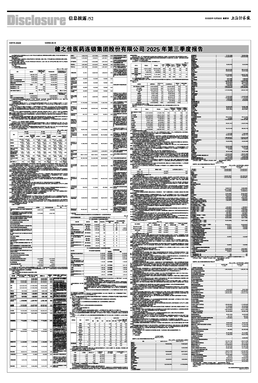 健之佳医药连锁集团股份有限公司 2025年第三季度报告