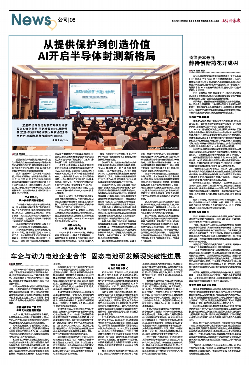 “我相信,中国医药行业在未来很长一段时间,都有不错的发展机遇。”朱湃表示,倚锋资本将坚持价值投资,继续聚焦全球领先技术,帮助药企在研发上不断突破,耐心陪伴企业成长、发展。