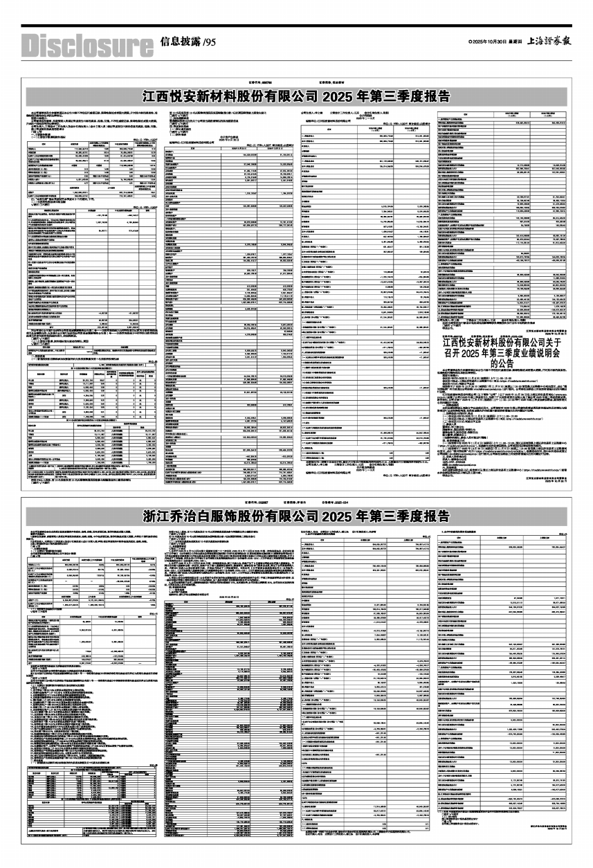 浙江乔治白服饰股份有限公司2025年第三季度报告