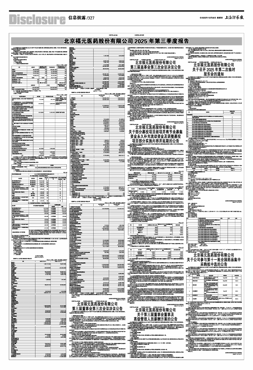 具体内容详见公司披露于上海证券交易所网站的《北京福元医药股份有限公司2025年第三季度报告》。