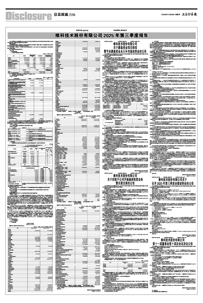 详见同日公司披露于上海证券交易所网站(www.sse.com.cn)及指定媒体的《维科技术2025年第三季度报告》。