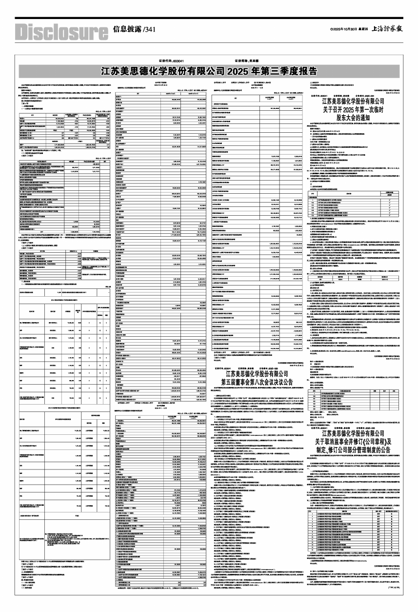 具体内容详见公司同日披露于上海证券交易所网站(www.sse.com.cn)及《上海证券报》上的《江苏美思德化学股份有限公司2025年第三季度报告》。