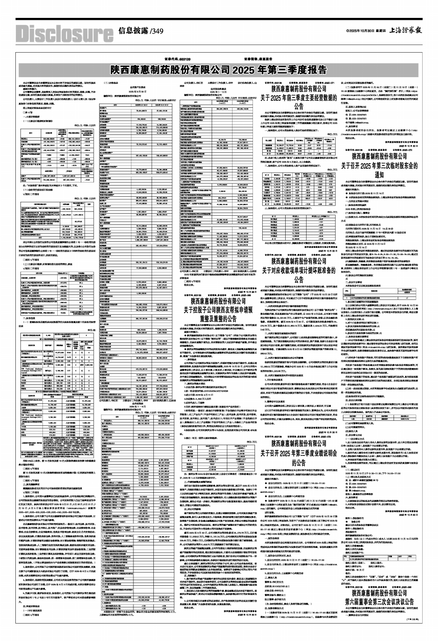 陕西康惠制药股份有限公司(以下简称“公司”)已于2025年10月30日发布公司2025年第三季度报告,为便于广大投资者更全面深入地了解公司2025年第三季度经营成果、财务状况,公司计划于2025年11月11日(星期二)16:00-17:00通过上海证券交易所路演中心(网址:http://roadshow.sseinfo.com/)举办2025年第三季度业绩说明会,就投资者关心的问题进行交流。