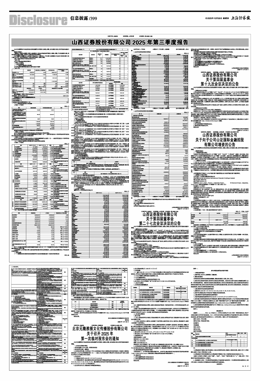 山西证券股份有限公司2025年第三季度报告