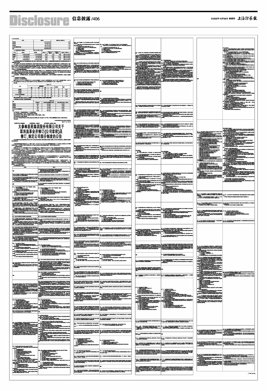 大参林医药集团股份有限公司(以下简称“公司”)于2025年10月29日召开第四届董事会第二十八次会议,审议通过《关于取消监事会并修订〈公司章程〉及附件的议案》和《关于修订及制定公司部分制度的议案》。现将有关情况公告如下: