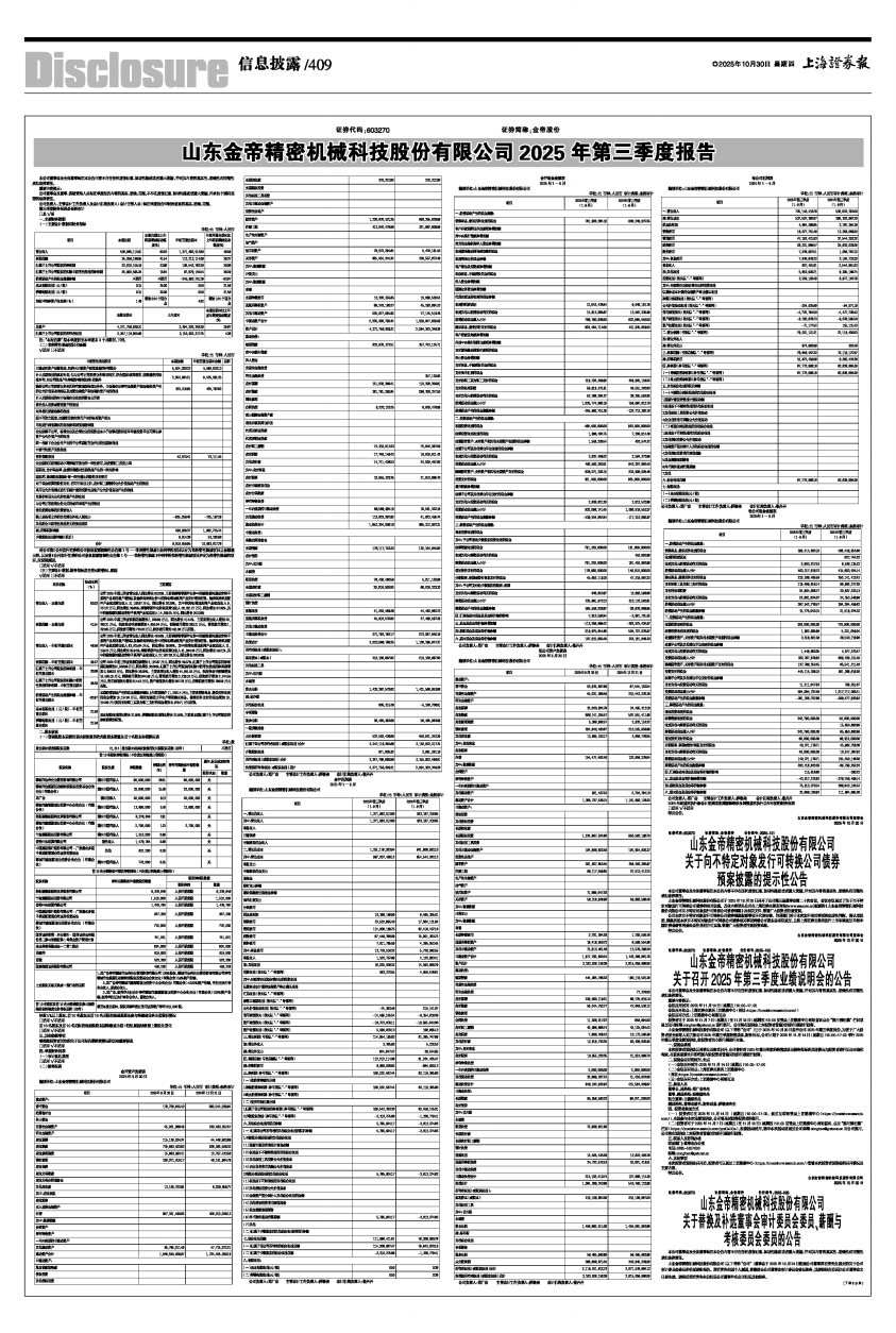 山东金帝精密机械科技股份有限公司2025年第三季度报告