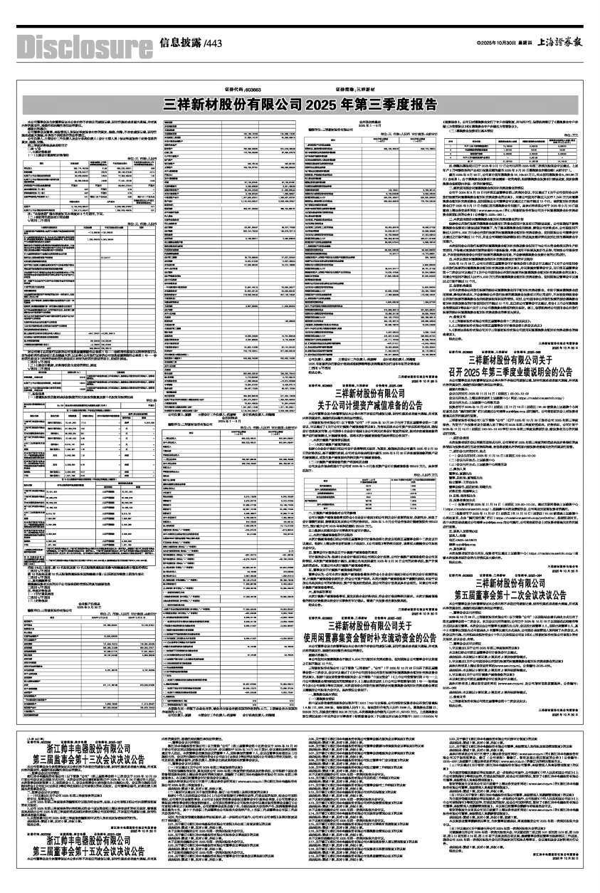 具体内容详见公司同日刊登于上海证券交易所网站(www.sse.com.cn)的《浙江帅丰电器股份有限公司2025年第三季度报告》。