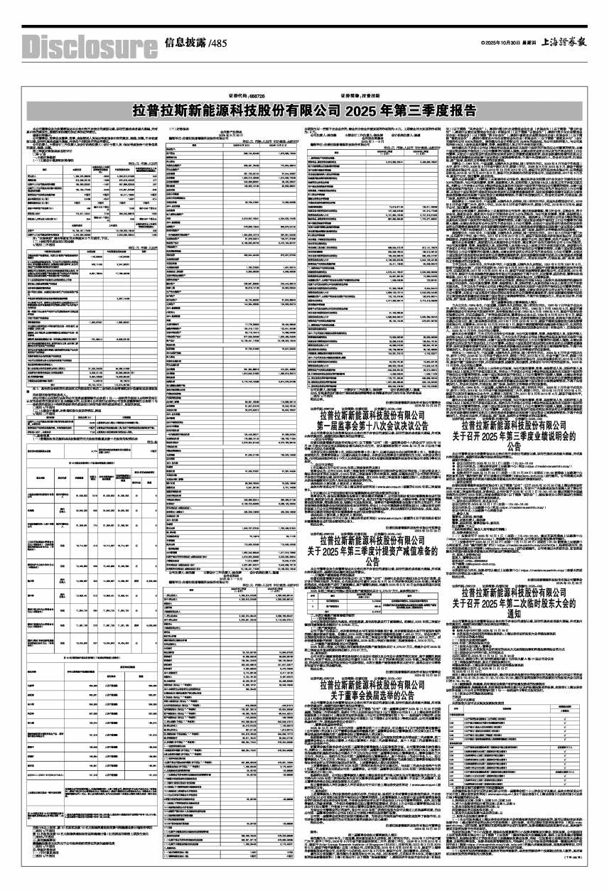 拉普拉斯新能源科技股份有限公司 2025年第三季度报告