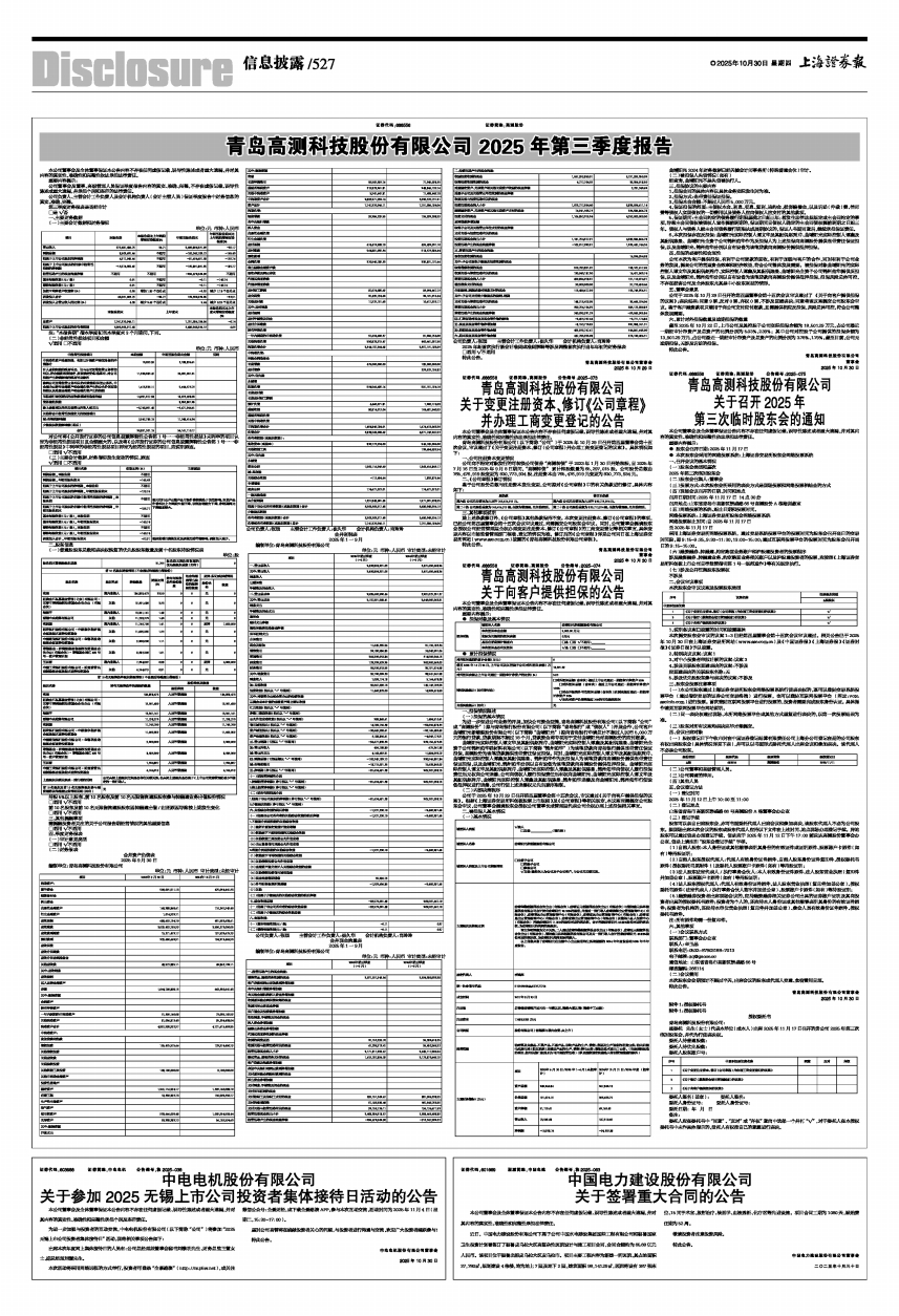 公司向不特定对象发行的可转换公司债券“高测转债”于2023年1月30日开始转股,自2025年7月16日至2025年9月8日期间,“高测转债”累计转股数量为65,297,015股。公司股份总数由765,476,919股变更为830,773,934股,注册资本由765,476,919元变更为830,773,934元。