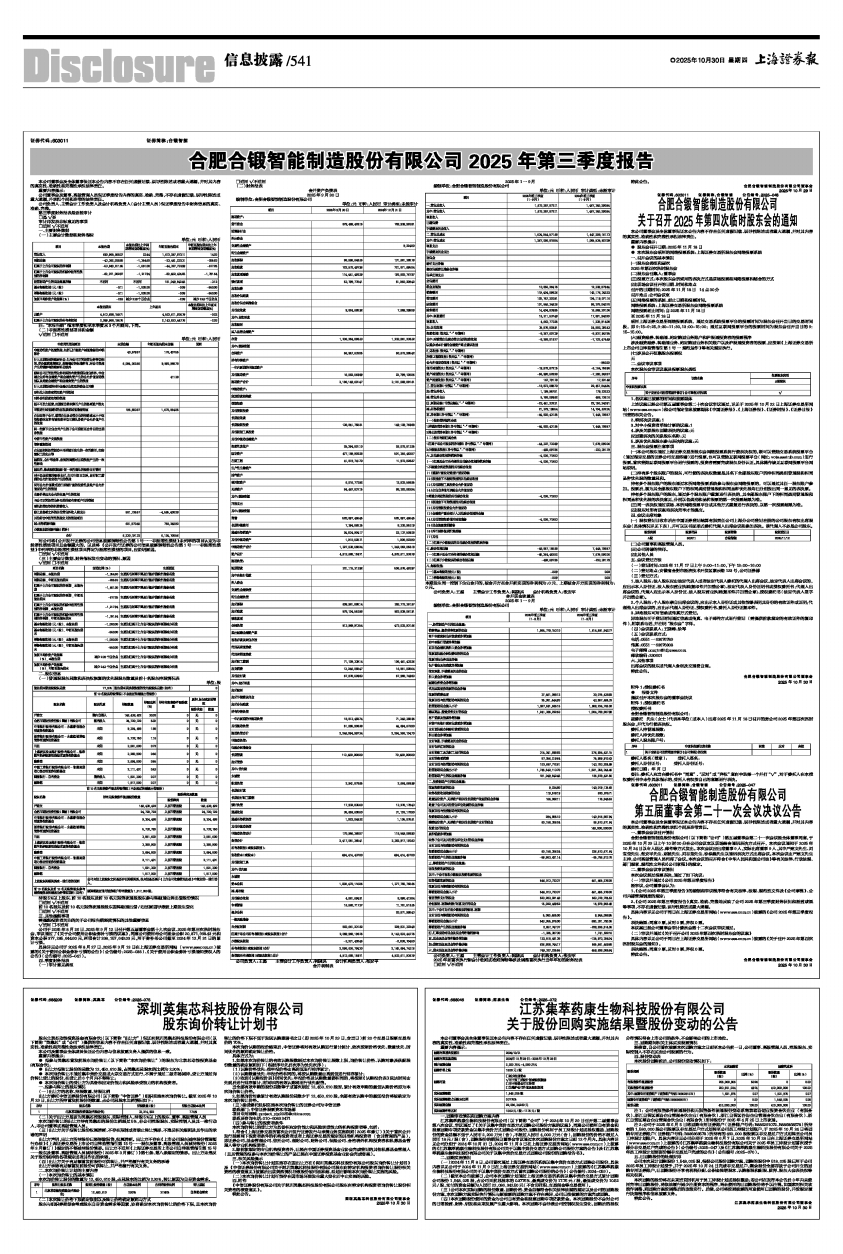 合肥合锻智能制造股份有限公司 2025年第三季度报告