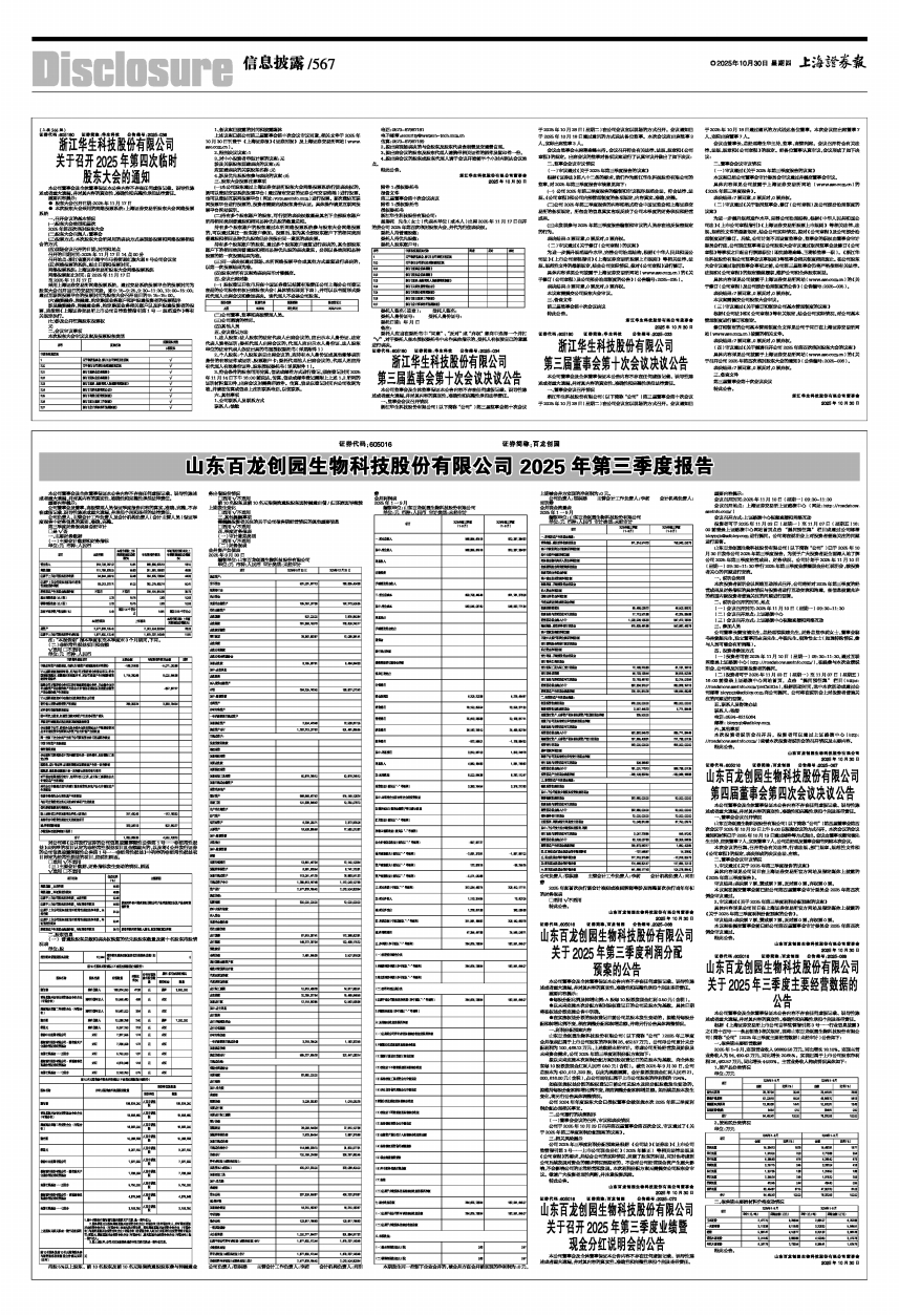 根据《上海证券交易所上市公司自律监管指引第3号一一行业信息披露》之《第十四号一一食品制造》相关规定,现将山东百龙创园生物科技股份有限公司(简称“公司”)2025年三季度主要经营数据(未经审计)公告如下: